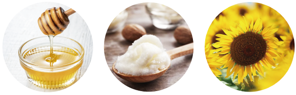 ●ハチミツ、シア脂、ヒマワリ種子油(全て保湿成分)配合